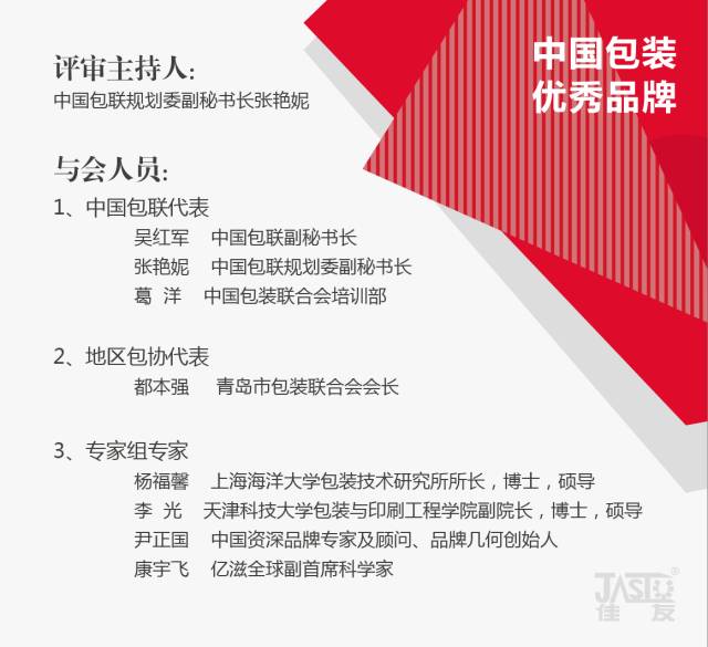 因此,评审专家一致认为,青岛佳友申报的“佳友”品牌符合中国包装联合会“中国包装优秀品牌”评审标准的要求,同意认定“佳友”为“中国包装优秀品牌”。同时提出宝贵建议,相信这些建议也将受用于中国包装领域广大企业同仁。